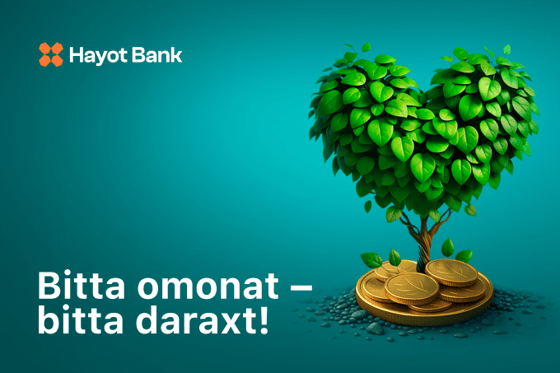 Hayot Bankning ekologik tashabbusi bankning barqaror rivojlanish va biznesning ijtimoiy mas’uliyatini oshirishga qaratilgan umumiy strategiyasining bir qismidir. Endi omonat ochish orqali bank mijozlari bir vaqtning oʻzida butun mamlakatning yashil kelajagiga sarmoya kiritadilar.