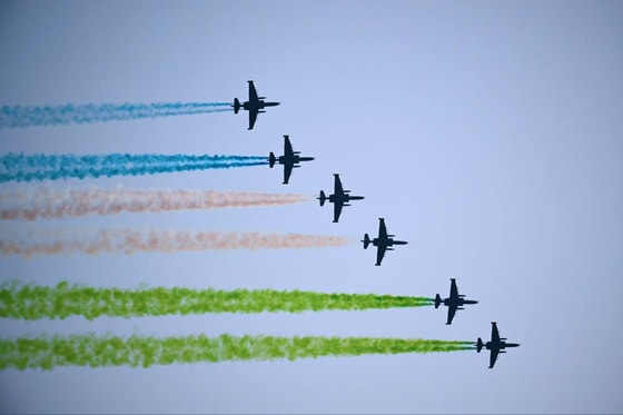 O‘zbekiston Harbiy-havo kuchlarining Su-25 hujumchi samolyotlari “Yangi O‘zbekiston” bog‘i uzra parvoz qilib, osmonni mamlakat bayrog‘i ranglariga bo‘yadi.