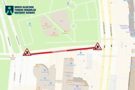 Shu munosabat bilan 18-oktyabr soat 14:00dan 20-dekabrga qadar “Oʻzbekiston ovozi” koʻchasining Shahrisabz koʻchasi bilan kesishmasidan, “Oʻzbekiston ovozi” koʻchasining Istiqlol koʻchasiga qadar qismi vaqtincha avtoulovlar harakati uchun yopiladi.