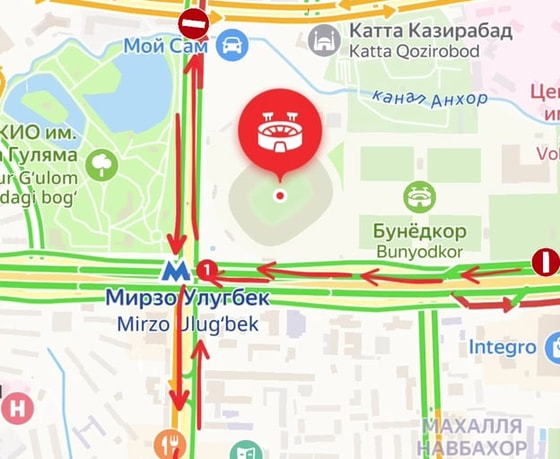 Bunga O‘zbekiston va Qirg‘iziston terma jamoalari o‘rtasidagi o‘yin o‘tkazilishi sabab bo‘ladi. Ushbu ko‘chalar: