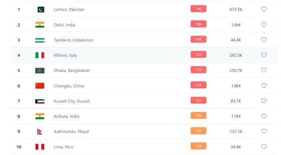 Toshkent shaharlar reytingida havoning ifloslanishi bo'yicha dunyoda uchinchi o'ringa tushdi. Bu haqda IQAir portali xabar bermoqda.