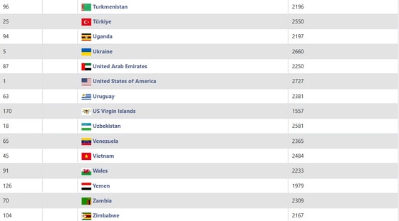 Ma'lumotlarga ko'ra, Rustam Qosimjonov (2670) 72-o‘rinda. Olimpiada chempionlari — Nodirbek Yoqubboyev (2656) va Javohir Sindorov (2651) kuchli yuztalikka kirib, mos ravishda 89- va 92-o‘rinlarni band etishgan.