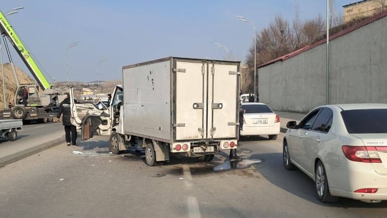 Yoʻl boʻylab bir yoʻnalishda harakatlanib kelayotgan KIA BONGO mashinasi TRUCK SHINERAY T30ʼni orqa qismidan urib yuborgan.