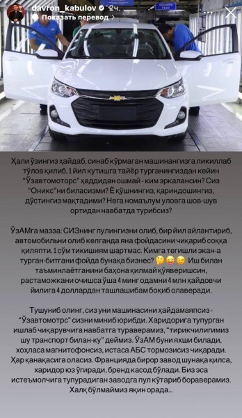 “Million” kulgi jamoasi yetakchisi Davron Kabulov Onixʼga pul toʻlab, uning chiqishini bir yil kutishga rozi boʻlgan xaridorlarga murojaat yoʻlladi.