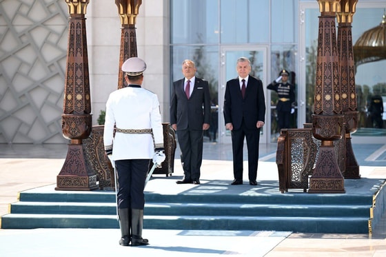 O‘zbekiston prezidenti va Iordaniya podshohi faxriy qorovul safi oldidan o‘tib, rasmiy delegatsiya aʼzolarini qutladi.