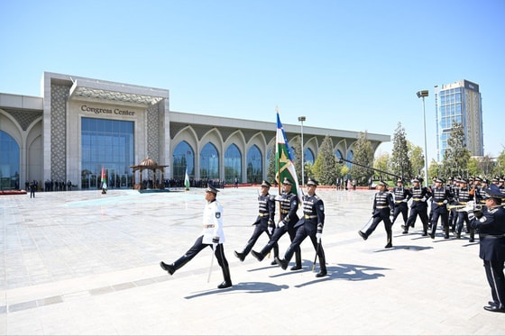 Kongress markazi binosi oldidagi maydonda faxriy qorovul saf tortdi. O‘zbekiston yetakchisi oliy martabali mehmonni samimiy qarshi olib, shohsupaga taklif etdi.