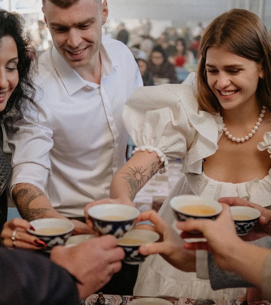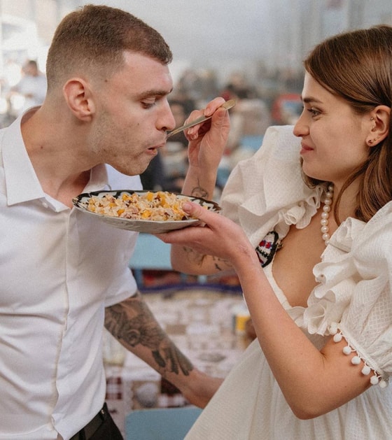 Barcha uchun sevimli bo'lgan bozorda fotosessiya uyushtirilgan: juftlik birgalikda palov yeyishdi, aravalarda sayr qilishdi.