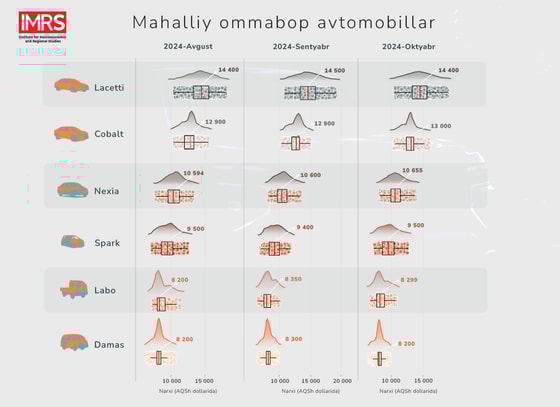 Mahalliy ommabop avtomobillar uchun oktyabr oyida taklif qilingan oʻrtacha narxlar quyidagilarni tashkil qildi: