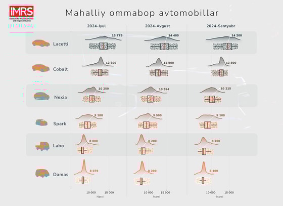 Makroiqtisodiy va hududiy tadqiqotlar instituti mutaxassislari tomonidan 2024-yilning iyul-sentyabr oylarida avtomobil narxlari tahlil qilindi.