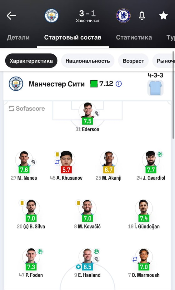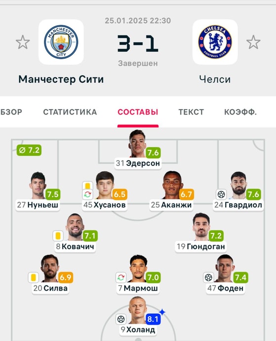 Shundan soʻng “shaharliklar” oʻyin tizginini oʻz qoʻliga oldi. 42-daqiqada Gvardiol hisobni tenglashtirdi. Ikkinchi boʻlimda esa Holand va Fodenning gollari “Man Siti”ga muhim 3 ochkoni keltirdi.