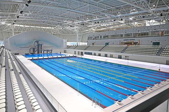 Ulkan suv sporti saroyi ham zamonaviy va qulay. Unda 25x50 metrli suzish va 25x20 metrli suvga sakrash havzalari, mashg‘ulotlar uchun basseyn va trenajyor zallari bor. Barcha sharoitlar va o‘lchamlar xalqaro olimpiya standarti talablariga javob beradi.