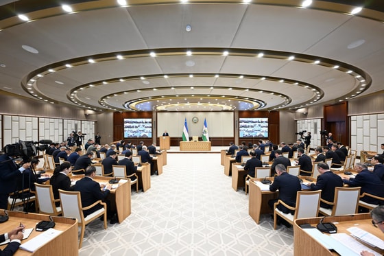 Prezident Shavkat Mirziyoyev raisligida amalga oshirilayotgan islohotlar natijadorligi, hududlarda ishlarning borishi, aholini o‘ylantirayotgan masalalarga yechim topish yuzasidan videoselektor yig‘ilishi o‘tkazilmoqda.