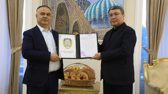 Adliya vaziri Akbar Toshqulov Samarqand viloyat hokimi v.b. Adiz Boboyevga “Samarqand noni” geografik koʻrsatkich hujjatini topshirdi.