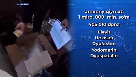 Shuningdek, uning yashash xonadoni koʻzdan kechirilganda, “Elevit”, “Ursosan”, “Dyufaston”, “Yodomarin” va “Dyuspatalin” nomli jami 405 ming 010 dona, umumiy qiymati taxminan 1 mlrd 800 mln soʻmdan ortiq sifat sertifikatiga ega boʻlmagan dori vositalari, 5000 dona yoʻriqnoma va 1200 dona qadoqlash qutisi borligi aniqlanib, tegishli tartibda rasmiylashtirib olindi.