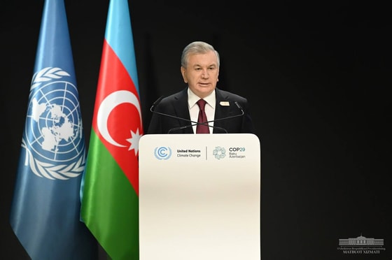 Shavkat Mirziyoyev 12-noyabr kuni Boku shahrida o‘tayotgan BMTning Iqlim o‘zgarishi to‘g‘risidagi hadli konvensiyasi Tomonlari konferensiyasining 29-sessiyasi (COP29) doirasidagi Jahon yetakchilari sammitining yalpi majlisida nutq so‘zladi.