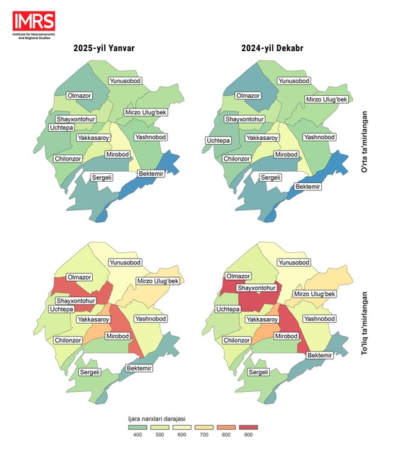 Makroiqtisodiy va hududiy tadqiqotlar instituti mutaxassislari tomonidan 2025-yilning yanvar oyida Toshkent shahrida uy-joylar uchun taklif etilgan ijara narxlari tahlil qilindi.