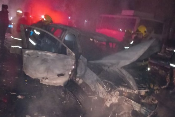 Natijada rul boshqaruvini yoʻqotib, yoʻl chetida harakatsiz turgan Isuzu rusumli avtobus bilan toʻqnashuv sodir etgan. Toʻqnashuvdan soʻng Tracker avtomobilining old qismida yongʻin chiqqan.