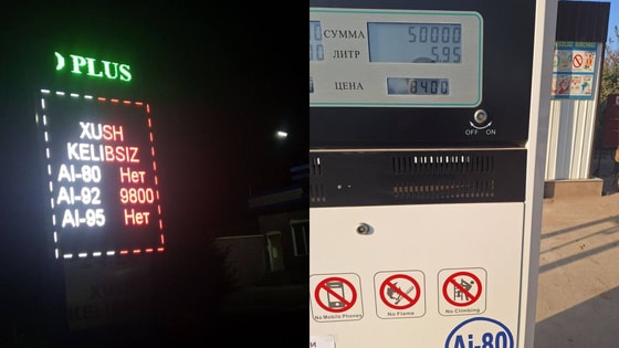 Shuningdek, Xorazm viloyati Bogʻot tumanidagi 5 ta AYOQSHda yaʼni “S.O.757” MCHJ, “O.X.” MCHJ , “B.O.X.” MCHJlar hamda “S.” va “Sh.” xususiy korxonalarga qarashli AYOQSHlarda AI-80 rusumli avtobenzin narxi asossiz oshirilgan holda sotilayotganligi aniqlandi.