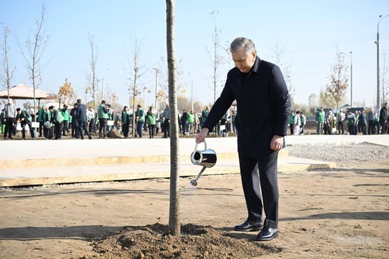 Prezident Shavkat Mirziyoyev 23-noyabr kuni “Yashil makon” umummilliy loyihasi doirasida barpo etilayotgan yangi boqqa koʻchat ekdi.