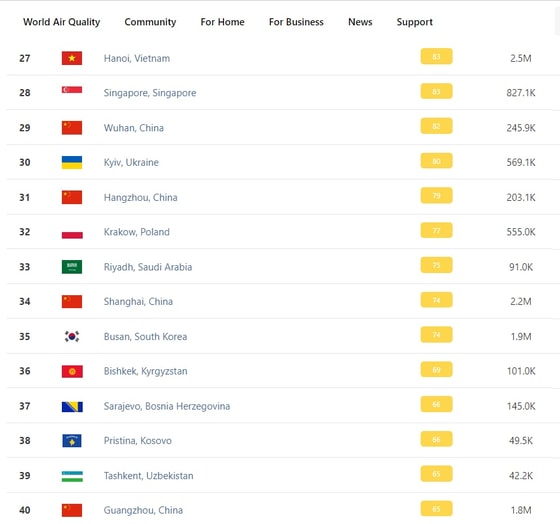Toshkent shaharlar reytingida havoning ifloslanishi bo'yicha dunyoda 39-o'ringa tushdi. Bu haqda IQAir portali xabar bermoqda.