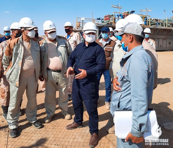 Председатель Правления АО «Узбекнефтегаз» Мехриддин Абдуллаев и члены Рабочей группы ознакомились с реализацией в Устюртском газодобывающем управлении проектов по бурению скважин, технологических объектов и газопроводов, осуществляемых на месторождениях в рамках «Программы увеличения добычи углеводородного сырья на 2017–2021 годы».