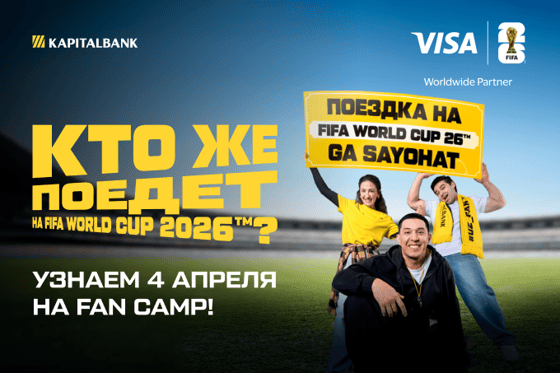 4 апреля в Amphitheater, Tashkent City Park в 15:30 откроется специальная зона для болельщиков к играм Чемпионата мира по футболу 2026 в США. Запуск FAN CAMP будет отмечен долгожданным розыгрышем призов от АКБ «Капиталбанк» и международной платежной системы Visa.