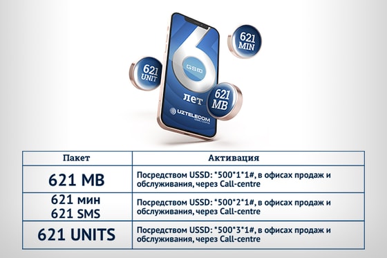 В честь этой знаменательной даты UZTELECOM запускает праздничную акцию «UZTELECOM GSM 6 лет», где каждый может выбрать подарочный пакет минут и SMS, мегабайт или UNITов.