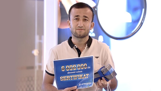 6-миллионным абонентом UZTELECOM стал Холниёзов Ойбек, житель Сурхандарьинской области, Денауский район. Руководство компании вручило почетному абоненту ценные подарки в ташкентском офисе продаж и поблагодарило за доверие.