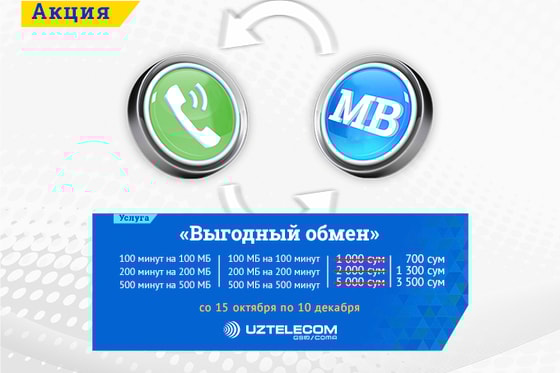 С 15 октября 2020 года по 10 декабря 2020 года объявляются скидки на стоимость услуги ВЫГОДНЫЙ ОБМЕН, где абоненты могут обменивать остатки предоставленных им лимитов на другие более нужные.