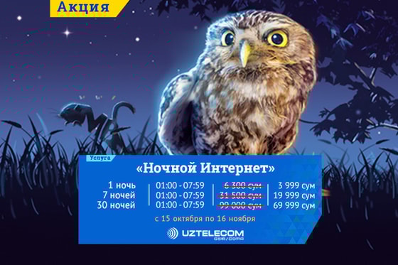 Кроме того, в период со 15 октября по 14 ноября цена на услуги «НОЧНОЙ ИНТЕРНЕТ» снижается в полтора раза. Это позволит абонентам пользоваться безлимитным ночным интернетом по выгодной цене.