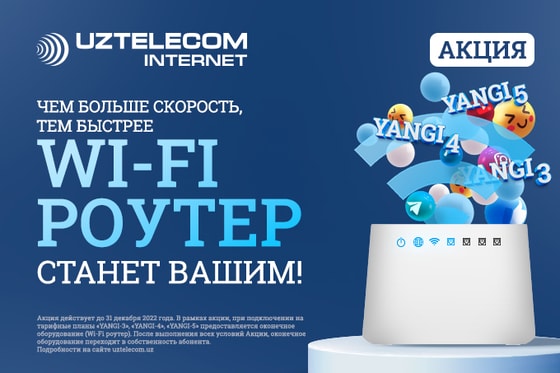 Теперь получить Wi-Fi роутер при подключении Интернет-услуг от UZTELECOM можно на ещё более выгодных условиях, ведь теперь при подключении услуг роутер может стать вашим уже через 3 месяца.