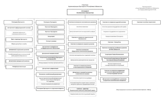 Президент Шавкат Мирзиёев подписал указ об изменении структуры Администрации главы государства, сообщает Gazeta.uz.