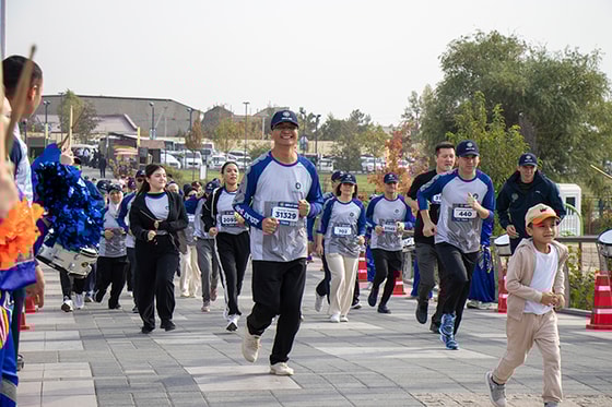 По всему маршруту участников сопровождали ансамбли карнай-сурнай, а также барабанщики, создававшие атмосферу драйва и поддержки. На старте и финише забега участников встречали чирлидерши, которые своими энергичными выступлениями добавили событию азарта и праздничного настроения.
