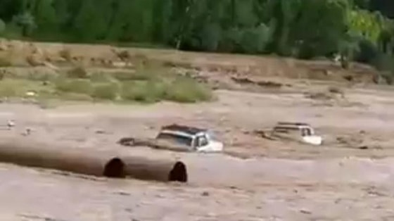 Сообщается, что две машины унесло водой. Одна машина была сбита большими трубами.