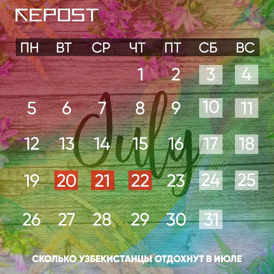 В Узбекистане празднование Курбан-Хайита будет длиться три дня. Данные выходные предусмотрены указом президента «О внесении изменений и дополнений в указ президента об установлении дополнительных нерабочих дней в период празднования официальных дат и переносе выходных дней в 2021 году».