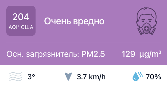В 11:00 станция мониторинга в столице Узбекистана показывала результат в 204 AQI. Концентрация PM2.5 — в 25.8 раз выше рекомендуемого ВОЗ среднегодового значения качества воздуха.