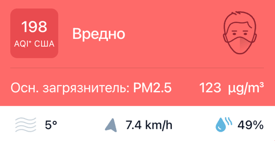 В 11:00 станция мониторинга в столице Узбекистана показывала результат в 198 AQI. Концентрация PM2.5 — в 24.6 раза выше рекомендуемого ВОЗ среднегодового значения качества воздуха.