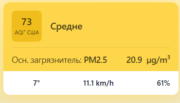 В 10:00 станция мониторинга в столице Узбекистана показывала результат в 73 AQI. Концентрация PM2.5 — в 4,2 раза выше рекомендуемого ВОЗ среднегодового значения качества воздуха.