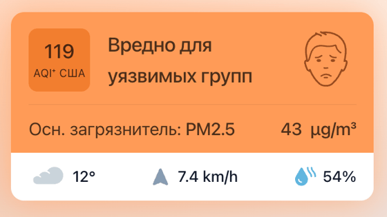 В 11:30 станция мониторинга в столице Узбекистана показывала результат в 119 AQI. Концентрация PM2.5 — в 8,6 раза выше рекомендуемого ВОЗ среднегодового значения качества воздуха.