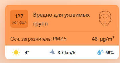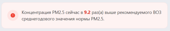 В 11:00 станция мониторинга в столице Узбекистана показывала результат в 127 AQI. Концентрация PM2.5 — в 9,2 раза выше рекомендуемого ВОЗ среднегодового значения качества воздуха.