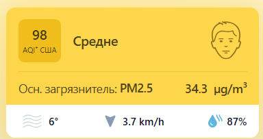 В 09:00 станция мониторинга в столице Узбекистана показывала результат в 98 AQI. Концентрация PM2.5 — в 6,9 раза выше рекомендуемого ВОЗ среднегодового значения качества воздуха.