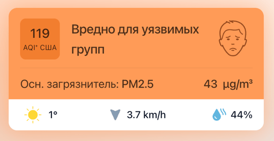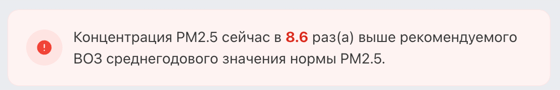 В 11:30 станция мониторинга в столице Узбекистана показывала результат в 119 AQI. Концентрация PM2.5 — в 8,6 раза выше рекомендуемого ВОЗ среднегодового значения качества воздуха.