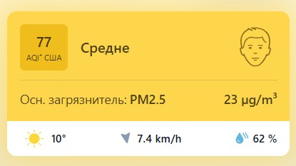В 09:55 станция мониторинга в столице Узбекистана показывала результат в 77 AQI. Концентрация PM2.5 — в 4,6 раза выше рекомендуемого ВОЗ среднегодового значения качества воздуха.
