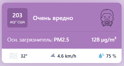 В 08:50 станция мониторинга в столице Узбекистана показывала результат в 203 AQI. Концентрация PM2.5 — в 25,6 раза выше рекомендуемого ВОЗ среднегодового значения качества воздуха.