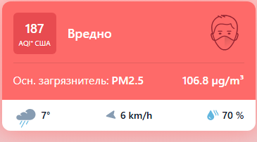 В 08:50 станция мониторинга в столице Узбекистана показывала результат в 187 AQI. Концентрация PM2.5 — в 21,4 раза выше рекомендуемого ВОЗ среднегодового значения качества воздуха.