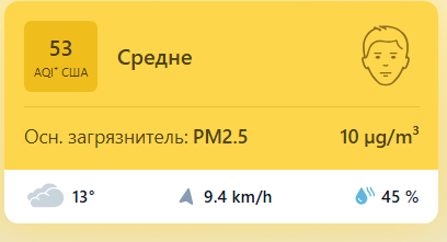 В 09:00 станция мониторинга в столице Узбекистана показывала результат в 53 AQI. Концентрация PM2.5 — в 2 раза выше рекомендуемого ВОЗ среднегодового значения качества воздуха.