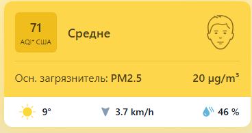 В 11:50 станция мониторинга в столице Узбекистана показывала результат в 71 AQI. Концентрация PM2.5 — в 4 раза выше рекомендуемого ВОЗ среднегодового значения качества воздуха.