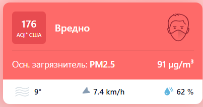 В 08:50 станция мониторинга в столице Узбекистана показывала результат в 176 AQI. Концентрация PM2.5 — в 18,2 раза выше рекомендуемого ВОЗ среднегодового значения качества воздуха.
