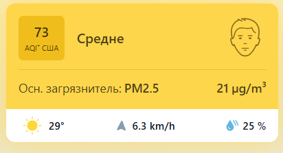 В 09:03 станция мониторинга в столице Узбекистана показывала результат в 73 AQI. Концентрация PM2.5 — в 4,2 раза выше рекомендуемого ВОЗ среднегодового значения качества воздуха.