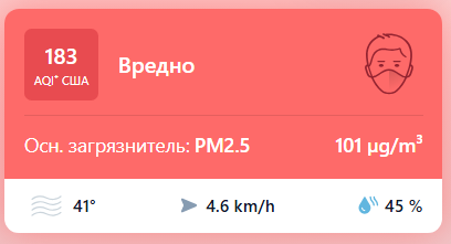 В 08:50 станция мониторинга в столице Узбекистана показывала результат в 183 AQI. Концентрация PM2.5 — в 20,2 раза выше рекомендуемого ВОЗ среднегодового значения качества воздуха.